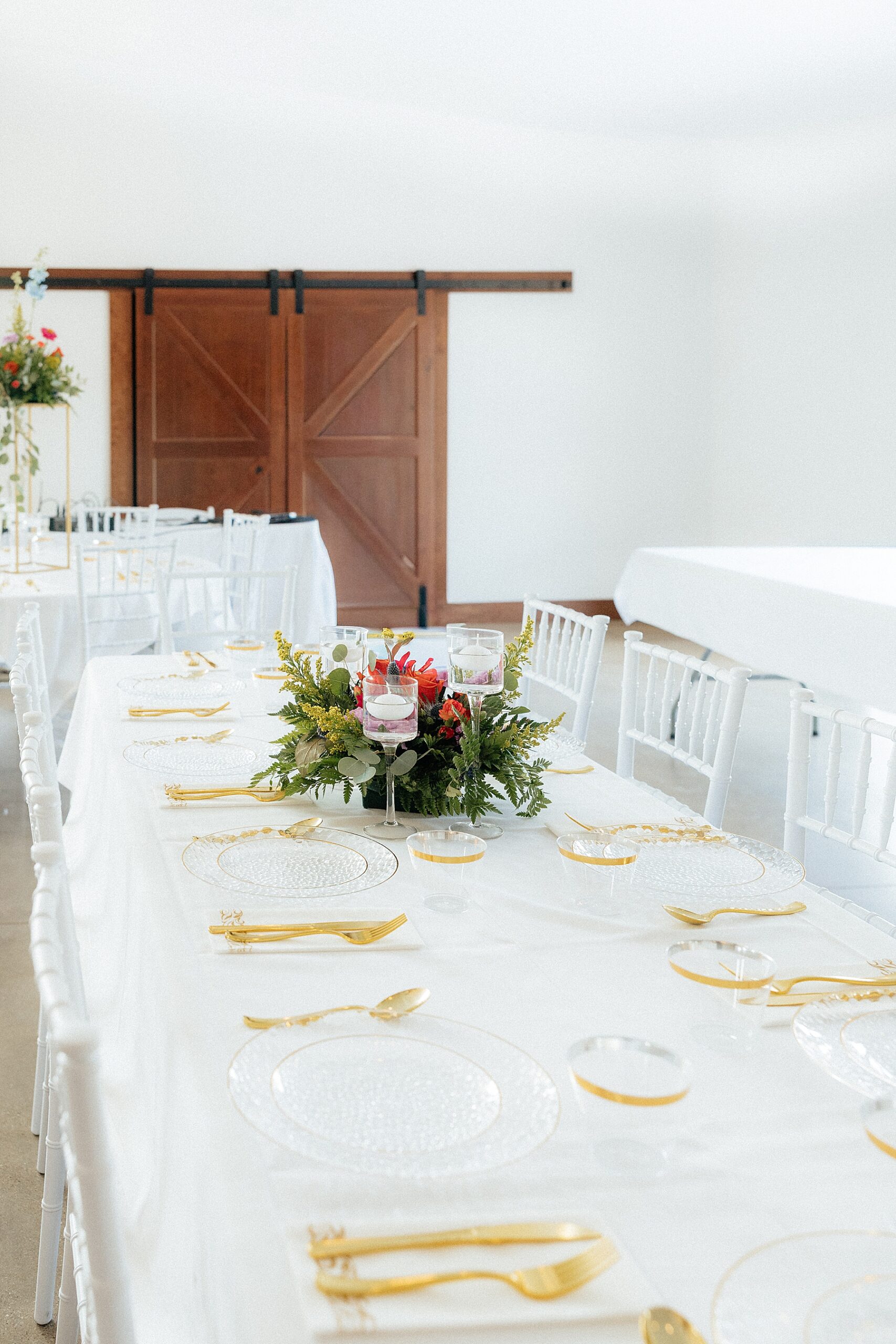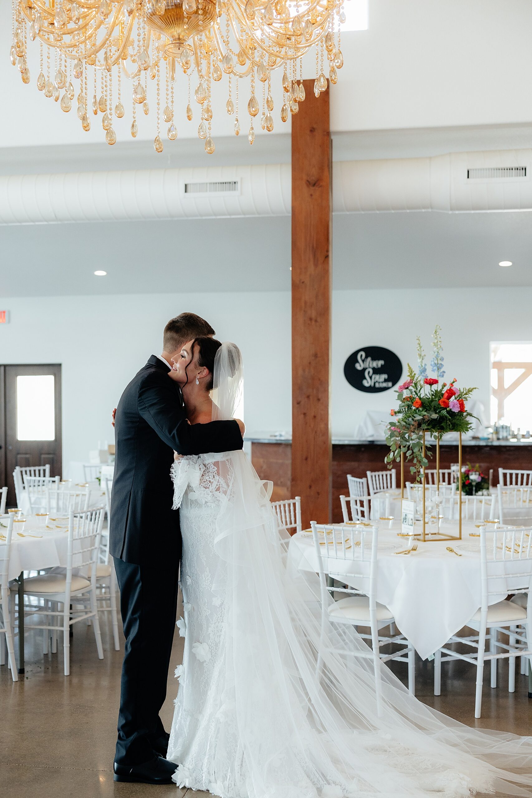 As soon as the couple exited the church, they hopped onto the party bus with their wedding party to keep the celebration going. I headed straight back to Silver Spur Ranch to capture the finished reception details before guests arrived.