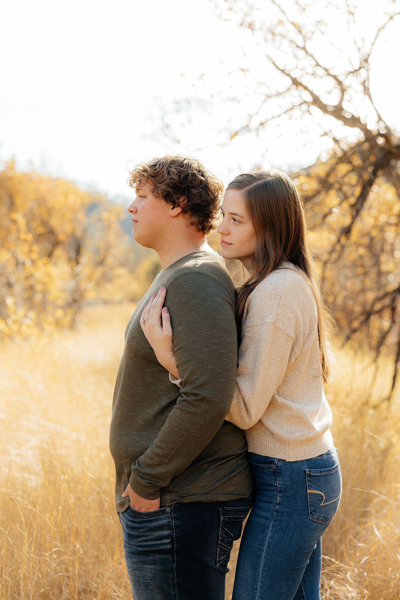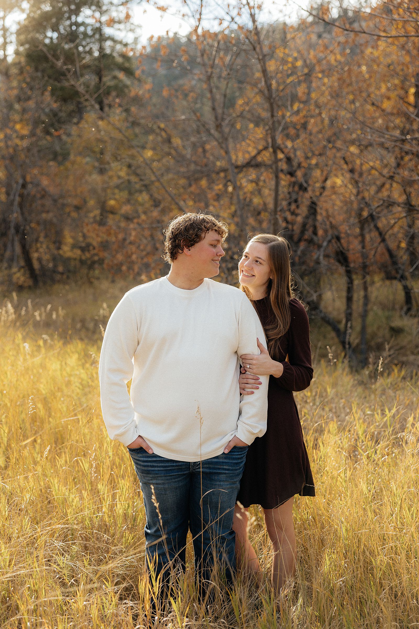 As a Rapid City wedding photographer, there are few things I love more than helping couples experience the magic of autumn in the Black Hills. Hannah and Parker dreamed of fall colors for their engagement session, so we planned everything around the peak of the season. These Spearfish fall couples photos capture exactly what they envisioned: vibrant color, warm light, and the feeling of simply enjoying each other.
